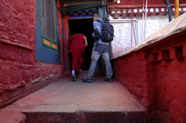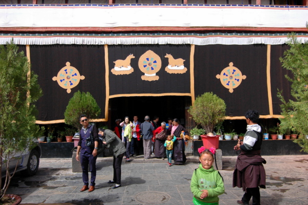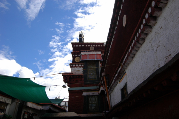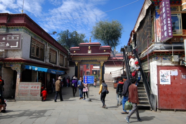 小昭寺門口有售票亭(20元/人),不過參觀小昭寺的遊客較少,檢票的喇嘛並不是很認真。小昭寺熱鬧不如大昭寺,是有其歷史背景的-曾經盛極一時的小昭寺,在松贊干布死後,曾一度冷落。芒松芒贊執政時期(西元650—676年),聞知唐高宗將派兵進藏,疑奪釋迦牟尼銅像,便將佛像從小昭寺遷移於大昭寺南廂秘室中。同時,「所有住在拉薩惹謨伽寺(小昭寺)等處的和尚,一律驅逐出境。」