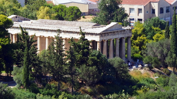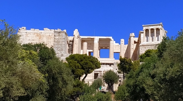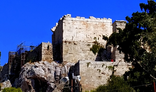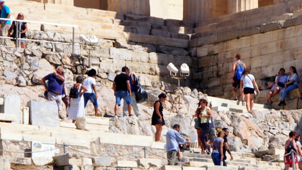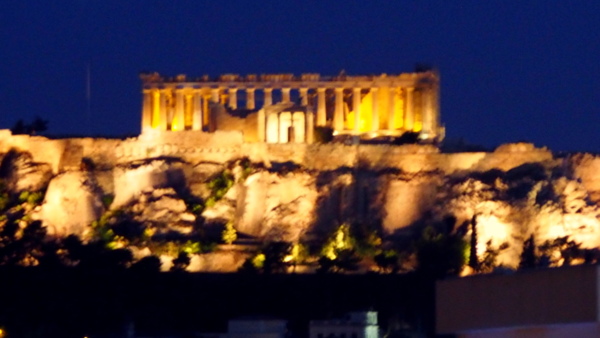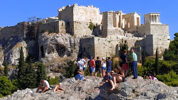 雅典奧林匹克體育場後,領隊說繼續去火星丘;行程表上說團體將徒步前往矗立於雅典市區中,原名為亞略巴古的火星丘。由於旅遊巴士是直接開到雅典衛城的停車場,讓大家一陣驚喜。領隊說在火星丘遠眺雅典衛城,不進入雅典衛城。這讓大家更是驚愕,來希臘旅遊,除了愛琴海的島嶼度假外,阿波羅神殿與雅典衛城,特別是帕德嫩神殿,如果只是遠眺,那這個行程還剩下什麼?