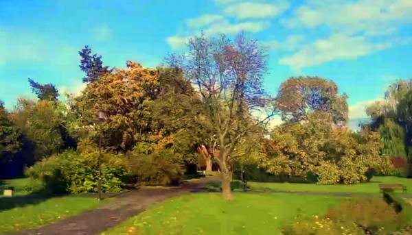 華沙以高度綠化聞名,來之前特別查資料,華沙市區綠化面積達126平方公里;市區內大小的公園有67個。當旅遊巴士循高架高速公路進入華沙市區時,憑窗眺望,映入眼簾的就是一幅美麗壯觀的城市景色。銀波粼粼的維斯瓦河,如一條玉帶環繞在華沙的腰際,雄偉的華沙古城屹立在河岸邊,歐洲中古世紀的紅色尖頂建築群鱗次櫛比。橫跨維斯瓦河的鐵橋上,車水馬龍,一派繁華景象。條條熱鬧的大街兩側,房屋高聳,綠樹成行,草坪連片,伸向遠方,整座城市猶如一艘停泊在綠色海洋之中的巨輪。