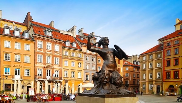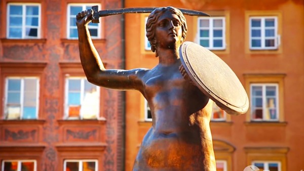 1936年,波蘭著名的雕刻家魯德維卡·克拉科夫斯卡一尼茨霍娃女士,開始雕塑美人魚雕像;這尊美人魚雕像與其他美人魚一樣,上身也為裸體的妙齡女郎,下半身則為魚尾。不同其他的美人魚雕像,華沙的美人魚雕像高大,姑娘昂首挺胸,左手緊握盾牌,右手則高舉著利劍,塑造了保衛國家的英雄形象。如今,矗立在舊城廣場的美人魚雕像前,終年花束不斷,也表現了波蘭人民對家國的熱愛。
