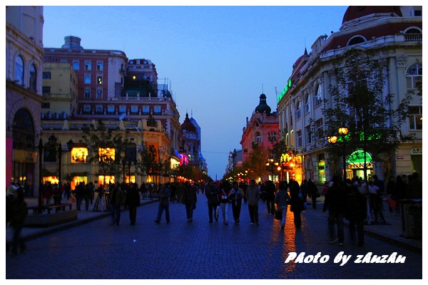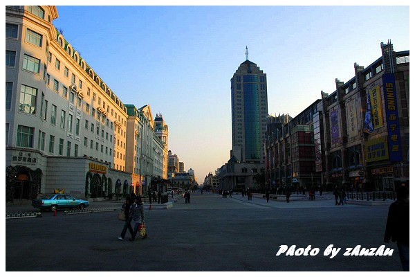 中央大街步行街是很美的,感覺和上海的十里洋場完全不同,我一直閒逛到傍晚時分,直到華燈初上,一切都是那麼愜意、悠閒。中央大街還有一道亮麗風景,就是哈爾濱女孩,都說哈爾濱的男人剛健女人漂亮;確實如此,街上的女孩們大多穿著薄薄的皮毛大衣,顯出窈窕的身姿。很多女孩又帶著皮帽,一縷頭髮從帽檐下頑皮地鑽出來,輕輕撫著如天使般美麗的面龐………。