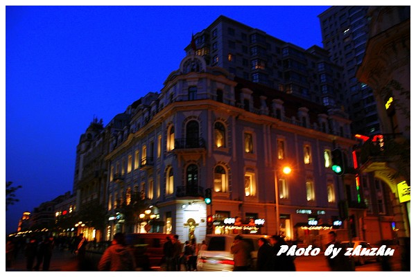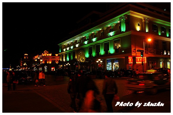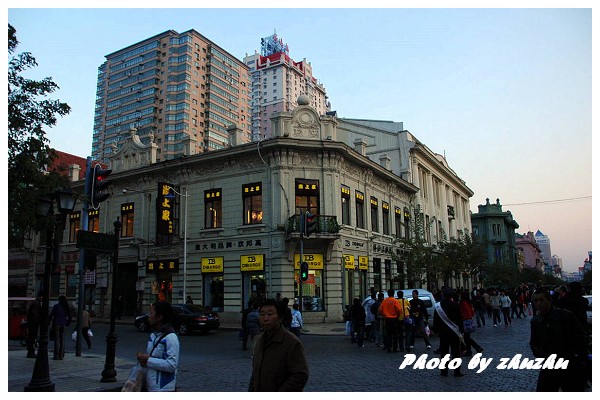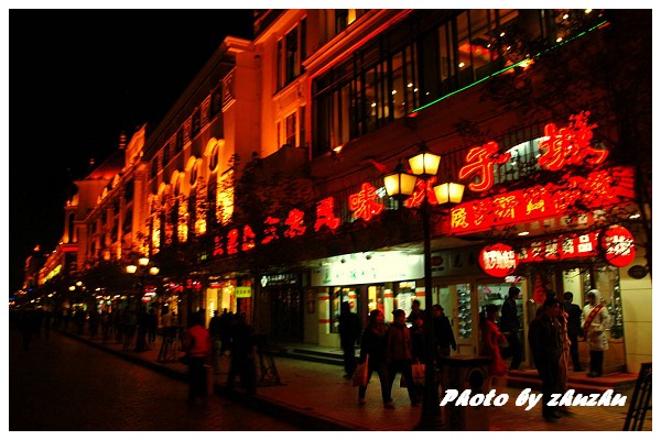 涵蓋了歐洲最具魅力近400多年文化發展史的中央大街,不論白天或夜晚,它都是哈爾濱一道靚麗的風景線。此行在大連時,也去過那裏的俄羅斯風情街,建築雖美,但嶄新的感覺,總讓人覺得是走在豪華的電影佈景裏面。而哈爾濱中央大街的歐式建築,歷經了將近百年的風雨,仍然矗立在眼前,每一棟建築都是一段凝固的歷史;只是古老的建築上面嶄新的招牌林立,似乎有些顯眼。