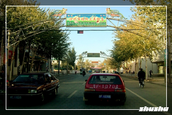 由於時間還早,並為避免耽誤明日參觀莫高窟的主要行程,越野車在進入市區後並未停留,直接穿越市區,依地圖指示直奔往路上赫赫有名的鳴沙山、月牙泉景區。鳴沙山與月牙泉景區位於敦煌市區西南