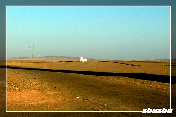 繼續走215國道,面向太陽西南行,此時金烏西墜,疾馳在戈壁沙漠上