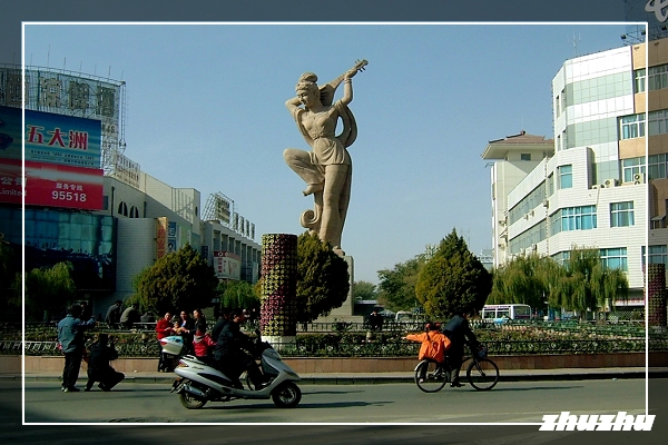 「背彈琵琶」膾炙人口,在敦煌市區中心就塑立了這麼一座標誌