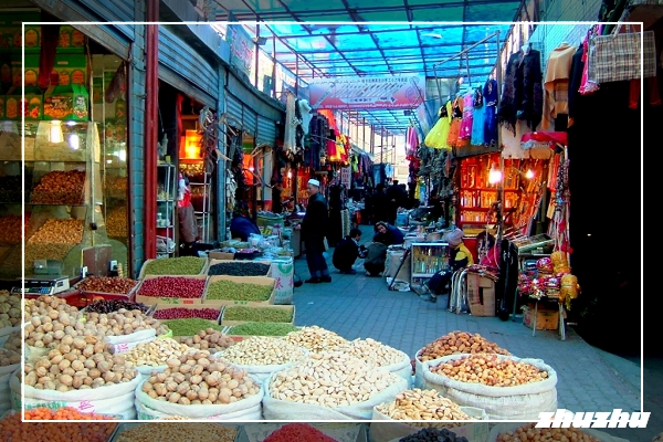 據史料記載,二道橋是清朝時期沙俄在烏魯木齊劃定的貿易圈子,因新疆地處在中西經貿交流的要道上;再加上烏魯木齊作為新疆的首府,在此發展商貿就擁有了地利之便。的士車是在二道橋巴扎這邊到達,我要求的士師傅不要再右轉回轉,讓我提前下車,理由就是為了尋找維吾兒民族特色的感覺。果然,異國風味覺得如此新鮮,身邊全是高鼻深目的維族人,販賣著來自新疆各地乃至中、西亞各國的傳統手工藝品、生活用品,吃、穿、用、玩應有盡有。