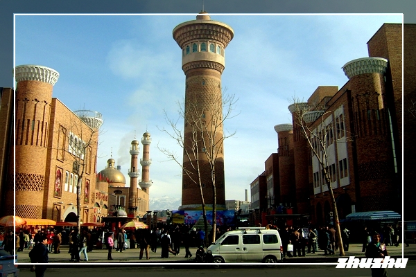 國際大巴扎由六個樓群組成。濃郁的伊斯蘭建築風格,重現了古絲綢之路的繁華