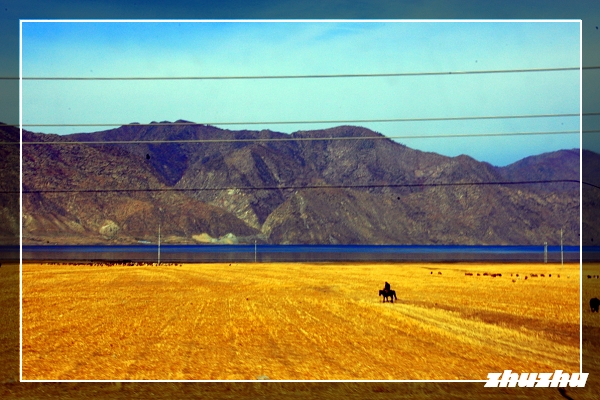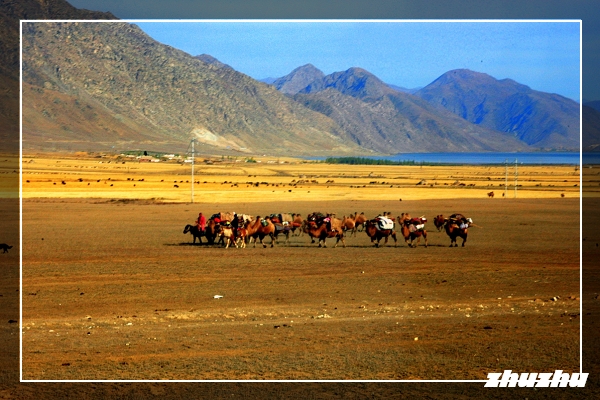 湖畔的駝隊,在悅耳的駝鈴聲中緩緩前行