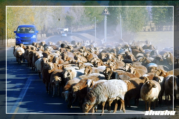 海子口水庫附近轉場的羊群