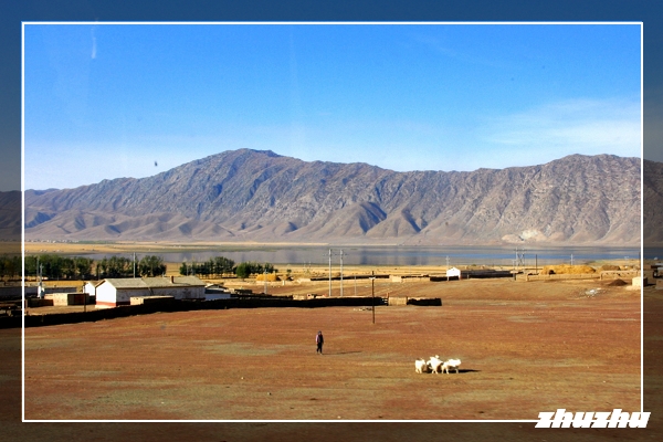 伊雷木特湖俗稱海子口水庫,蒙古語意為漩渦,是卡拉先格爾地震斷裂帶上形成的斷陷窪地,被譽為藍色河灣。湖水澄清碧藍,藍的勾人魂魄,似一匹華麗的錦緞徐徐鋪展,絲般光滑,一塵不染,偶爾幾簇大塊的雲朵淺灑,極像錦緞上刺繡的白菏。湖畔的駝隊,在悅耳的駝鈴聲中緩緩前行,駱駝都被剃去了駝毛,露出乾淨又可愛的模樣,牠們將氈房及民生必需品還有自己的駝毛馱在身上。