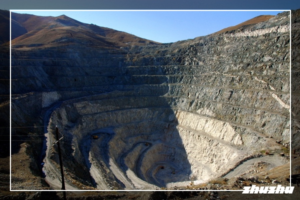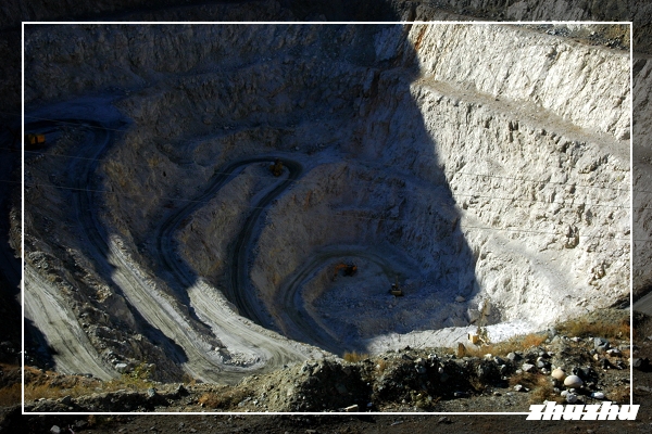 山壁上的層層旋環運礦車道,狀如古羅馬的巨型鬥獸場,氣勢頗為壯觀。