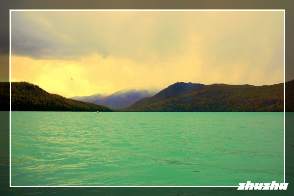 我除了不斷用相機拍攝兩岸美景,眼睛還不斷搜索湖面,企盼看到一片長鰭劃破水面,看到幾個巨大的黑影遊弋水中?當然,看到湖怪是天方夜譚,但耆老既稱此處為喀納斯,為什麼不把這份神秘莫測永遠保存下去呢?旅遊主要是追求一種感受,是一種精神層面的藝術享受。何必要用現代科學去斷言一個神話的由來,去中止一個美麗傳說的虛構?讓野人在神農架永遠翻山越嶺,讓湖怪在喀納斯湖中永遠劈波斬浪,讓所有的景區都有神秘美麗吸引人的亮點,這又有何不可!