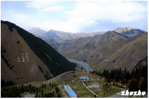 過去果子溝山高路險,雪崩、洪水、山體滑坡等地質災害時有發生;果子溝大橋建成後,徹底改變這種狀況。多次想停車拍照,但中途路險都不能停靠,直到一開闊谷地,才停車登上山坡俯瞰新建的果子溝大橋。欲與群山試比高,大橋就如一把橫臥山林間的巨型豎琴,成為果子溝的靚麗風景線;特別是從山中穿出的兩條高空高速公路,還有那個充滿未來感的隧道口,像極了時空穿梭機的軌道啊!