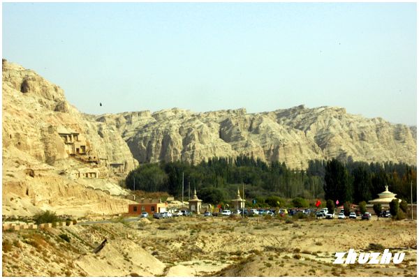 克孜爾千佛洞位於新疆維吾爾自治區阿克蘇地區庫車縣西北十四公里,拜城東南的河流階地中,與克孜爾尕哈烽隧毗鄰;兩山隔河遙遙相望,洞窟依山而鑿,從西元三世紀一直持續到八、九世紀(應是中國開鑿最早的石窟群)。當時為東漢末年,至西元5—7世紀時香火尤為鼎盛;其時龜茲國的人口有10餘萬人,而在千佛洞修行的僧侶竟然就有上萬人,盛況可想而知。時序至西元8世紀,因為戰亂和其他宗教的進入,佛窟開鑿的敲打聲始漸漸停止了。