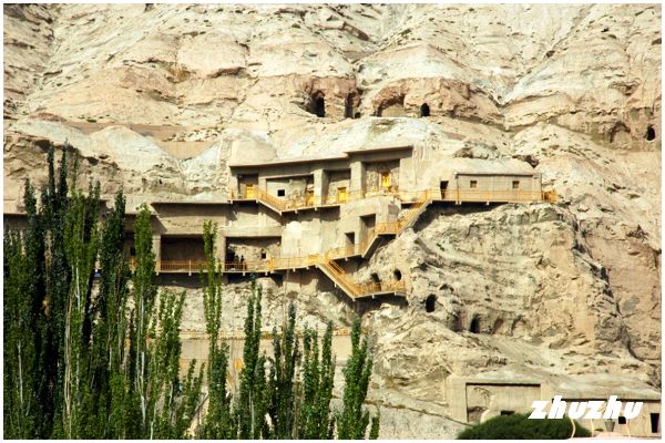 導覽說有兩個石窟裡曾有臥佛,但如今已杳無蹤跡;過去的牧民曾在裏面生活,他們的煙火把壁畫都燻黑了。僧舍都開有側室以擋風寒,室內還有壁爐,可是因為開鑿在山洞裏,只能借由視窗自然排煙。大部分人物的眼睛和面部都被毀了,導覽說這是因為穆斯林反對偶像崇拜,生活在千佛洞周邊的穆斯林就毀掉了壁畫的面部。殘破的壁畫,失去雕塑的龕台,被挖掉面部的恐怖人物造型,走在一個個洞窟裏,讓旅人不禁感到寒冷,雖然外面的陽光刺得人睜不開眼睛。