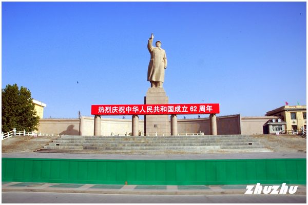 市政府前,有一尊高大的毛澤東揮手的塑像