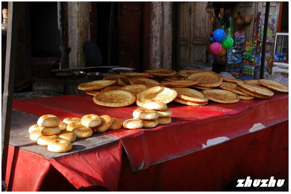 在新疆,饢是南北疆到處都有,隨處出現,非常好吃的食物!吃在新疆除了羊肉、瓜果,那就是饢了;前面幾個城市已多次介紹,也不斷隨身攜帶享用!以往在介紹新疆的影片中就見過饢,本以為就是燒餅西傳的過程?來到新疆,不吃不知道,吃了才有體會。那剛從烤爐壁上出爐的新鮮饢,內鬆、外脆,好吃極了!饢的品種很多,不盡相同,個人感覺也一定不同,但絕對會給遊人留下深刻的印象。