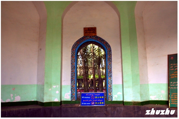 拱拜孜下面是多邊形過庭,兩邊有兩條通道通向庭院,兩條通道之間夾著一個雕花窗戶