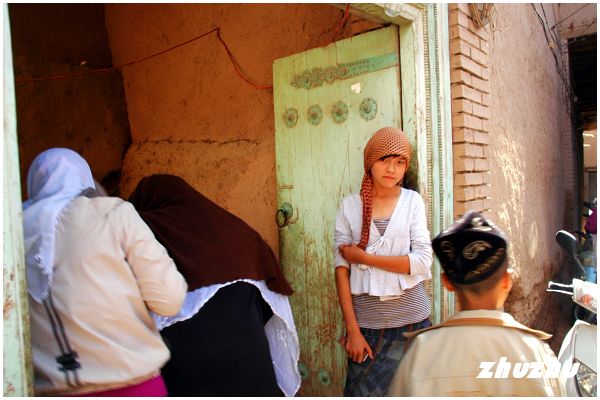 又走了幾條街區,巷內小道曲折蜿蜒!老區的房屋還是一樣黃泥一層層夯起來的,想必冬暖夏涼。很多人家裏很簡陋,生活用品也非常簡單,但居住在這裏的人們,都是一種很悠閒自得很滿足的神態。更欣賞老城區裏,不管是哪一家、哪怕是很小的院子,他們都會種滿花草;每家都栽有無花果樹,樹上結滿了果實。還看了以前巴依(地主)的家,門口居然還掛著低保戶的牌子!