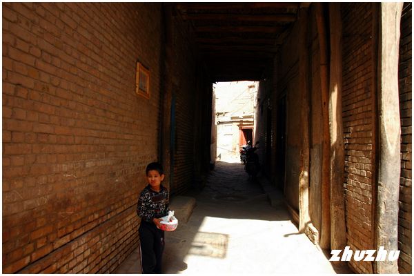 老城,源遠流長內涵豐富的老城,不是間單能夠說得盡道得完的。她就這樣日復一日年復一年;新的生命會悄然降生,老的自然會老去,繁衍生息無止境。喀什老城讓人有太多回味不盡的內容,感觸最深的是他如何在這樣日新月異的現代新城的包圍下,一直保有著原汁原味的古樸,甚至是原始,保有著特有的寧靜?突然想起了周莊,想起了麗江,但願喀什老城不會被商業充斥得面目全非。