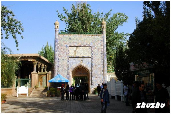 來到喀什,香妃墓是絕不能放棄的標的。將越野車停在景點前的停車場,購票後仔細打量這座典型的伊斯蘭古墓群,占地面積約2公頃。據說墓內葬有同一家族的五代72人(實際只見大小58個墓穴),第一代是伊斯蘭著名傳教士玉素甫霍加,他死後其長子阿派克霍加繼承父親的傳教事業,成為明末清初喀什伊斯蘭教依禪派著名大師,並一度奪得葉爾羌王朝的政權。他死於1693年,便葬於此,由於其名望超過了他的父親,所以後人便把這座陵墓稱為阿派克霍加墓。