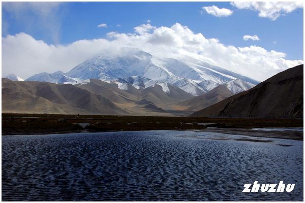 看久了慕峰的俊朗,回頭再觀峰旁這一路與越野車伴隨的公格爾九別峰,又是一番別樣的嫵媚。與慕士塔格峰隔湖相對的公格爾九別峰,大多數時候總是被白雲繚繞,無緣目睹其真面目。由從喀湖望去,公格爾九別峰是順光的,所以白得耀人眼目,巨大的雪山在雲霧中隱現,好像一幅壯觀的舞臺背景。公格爾九別在當地少數民族語中為白色的帽子,就是山頭終年積雪,猶如牧民頭上所戴的氊帽。