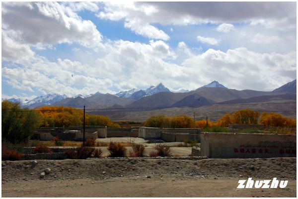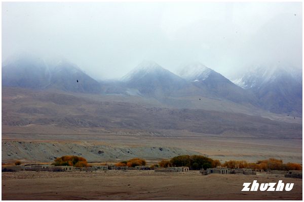 就這樣將思緒一路飛颺,一路行駛在高原上;不久前面出現一條河谷,谷中微微泛著一絲綠意,點綴著些許低矮的樹木。隨著地勢的降低,河谷的綠意越來越濃,開始出現小片的綠洲;路兩邊的村莊開始從雪霧中一點點露了出來,樹木掩映處也可見一處處本地牧人的房屋,石頭壘的院牆裏總是頑皮地露出一棵棵高聳的金色白楊樹,土黃色的屋頂上溫暖的炊煙嫋嫋彌漫,這裡居住的是塔吉克人。