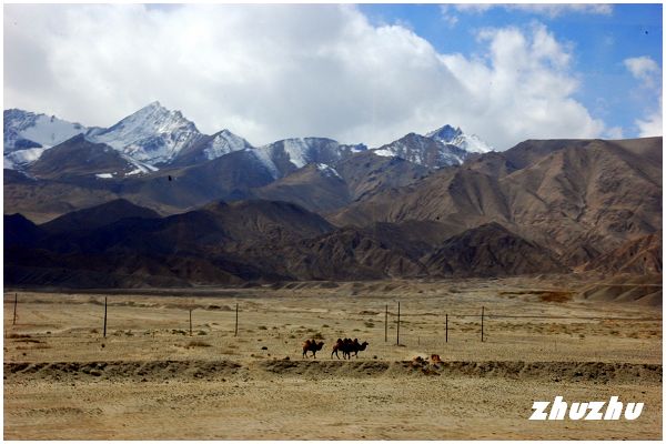 陰霾的天,終於太陽從雲層裏鑽出來了,地面的雪很快融化。高原上的天氣變化莫測,只不過走了二三個小時,同一條公路,二三個小時前是寒風刺骨,雪飛霧濃;可一會就風平浪靜,藍天白雲,但公路兩邊的草地還是鋪著薄薄的一層雪。除了羊群,偶而也能見到幾隻家養的駱駝;看過一些旅遊文章報導,塔吉克人等開春土地化凍後,就用這些駱駝拉犁,真有些意外,連拉犁的動物都這麼吸睛!
