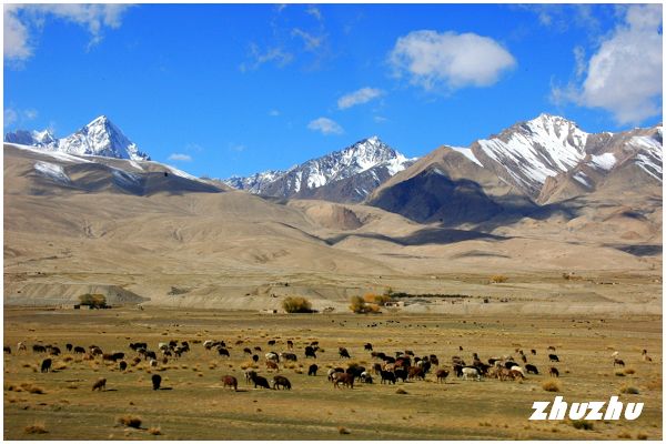 公路順著塔什庫爾干河谷前進,沿途都是成片的宜牧草場,塔縣以牧為主,零散播種一些青稞、豌豆等農作物。大陸近年為環境保護,積極實施牛羊品種改良,以保護草場,使之合理載畜;同時計畫改造和建設一批穩定量產的農田,興修水電站,加強基礎設施建設,以提高農牧民的所得。從車窗放眼望去,塔什庫爾干河兩岸一馬平川;高原的冬天來得早,河水清清,牧草枯黃,羊群像雲朵悠悠飄忽在草場,這邊幾頭黑犛牛,那邊幾頭黑白相間的花犛牛,間或一匹馬跑過去。