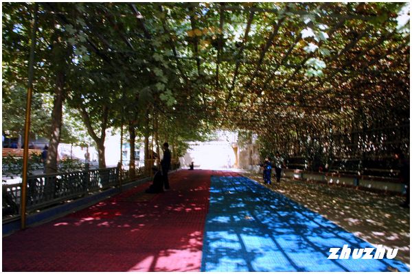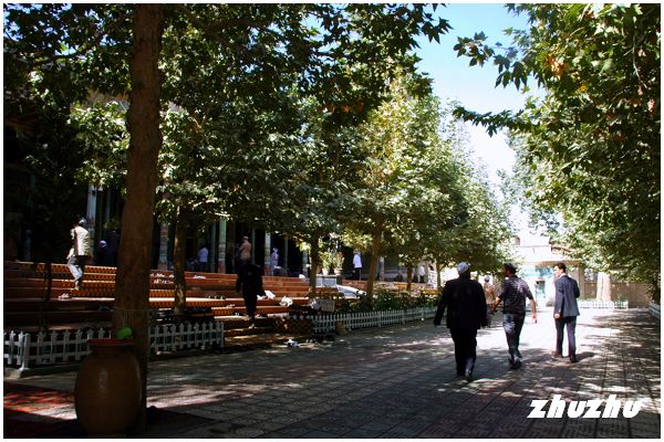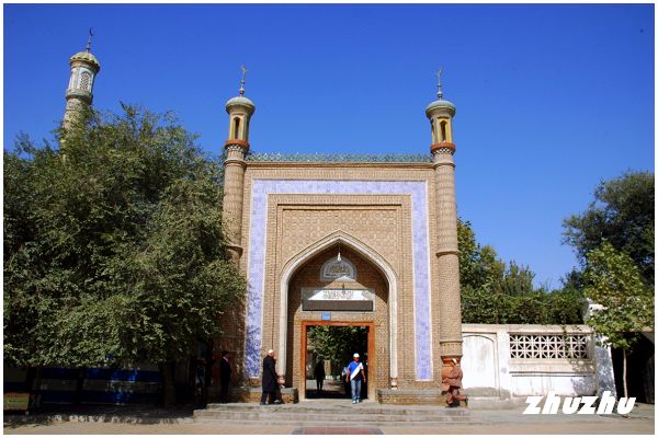 陵園裏能三三兩兩的看到一些參觀團,導遊大多用維語講解,也有導遊用英語講解。能查閱到有關這裏的相關資料很少,我在陵園裏只能簡單的看些外觀的摸樣,卻一直找不到講普通話導遊。在自己整體參觀完一遍陵墓後,帶著更多的疑惑逛第二遍的時候,遇到一位能說普通話的景區導遊。終於明白了一些疑惑,這位熱心的導遊,一邊用普通話給我講解,一邊用英文為兩位來自美國的遊客講解。