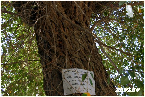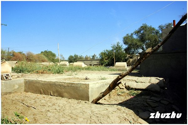 陵墓中有一棵300多歲的老榆樹,這裏的牆磚是四百多年前燒制,都一直保持著原貌,顯示出陵墓原有的歷史風華。王陵墓群旁一側,荒草掩映著一排排按照伊斯蘭教風俗砌成墳丘;墓穴之間偶爾長出一叢叢紅柳和雜草在微風中搖曳,簡陋、冷寂,顯示著這片陵墓的荒涼和年代久遠。要不是進入這裏的大門口寫著葉爾羌汗國國王陵墓,誰會相信這裏沉睡的是當年統治葉爾羌汗國的王與臣們!