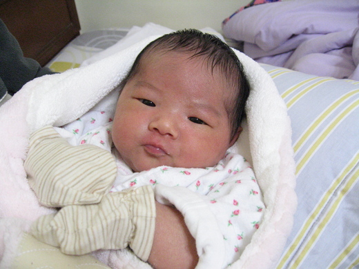 就在今年過年前,我女兒出世了。老婆痛了三天,針也打了,刀也挨了,做了手術這才把小妮子生出來。四千多公克!好重喔~!聽說是當日第一巨嬰!可是看起來也沒比較大隻!可是很重手!很像我做的冰淇淋,很沈重。