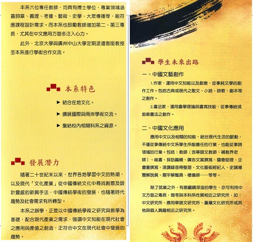 今天收到實踐大學高雄校區_應用中文系的簡介