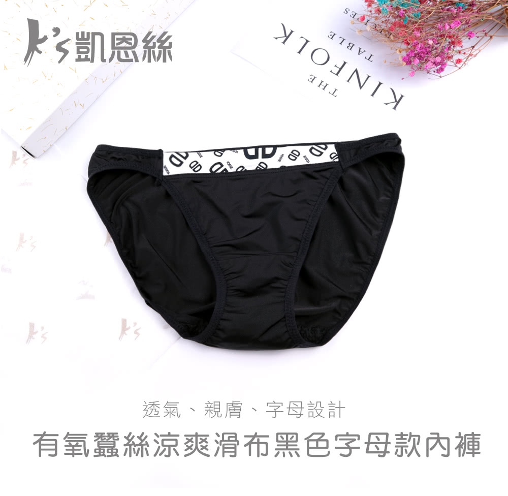 這個內衣品牌子好【K’s 凱恩絲】有氧蠶絲涼爽滑布黑色字母款內褲(3件組)你不能錯過