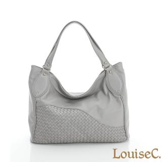 【LouiseC.】羊皮部分編織垂墜大容量肩背包灰色(02L06-0034A19) MOMO購物網 新品,正在促銷中!