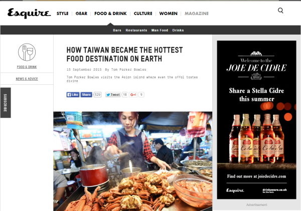 台灣的美食美味又多元,不少外國人到了台灣嘗過之後,紛紛大讚名不虛傳!現在全球英語地區銷量最佳的男性精品生活雜誌「仕紳」(Esquire),也在最新一期的內容大幅報導,提到台灣已成為全球最夯的美食終極地。