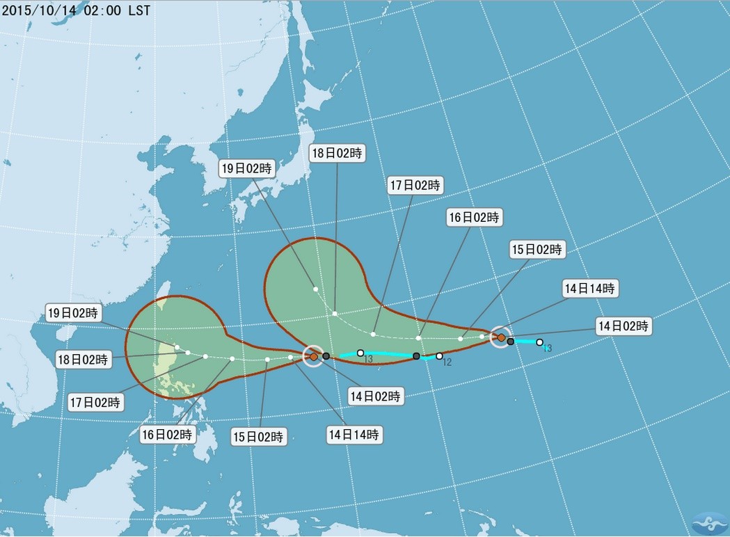 氣象局預報員林定宜說,巨爵颱風速度越來越慢,也有增強趨勢,預計明天登陸菲律賓呂宋島後受地形破壞,強度將減弱至輕颱,不過,由於巨爵移動速度緩慢,因此停留呂宋島時間可能長達2天之久,北上時間點一延再延,19日路徑才會明朗。