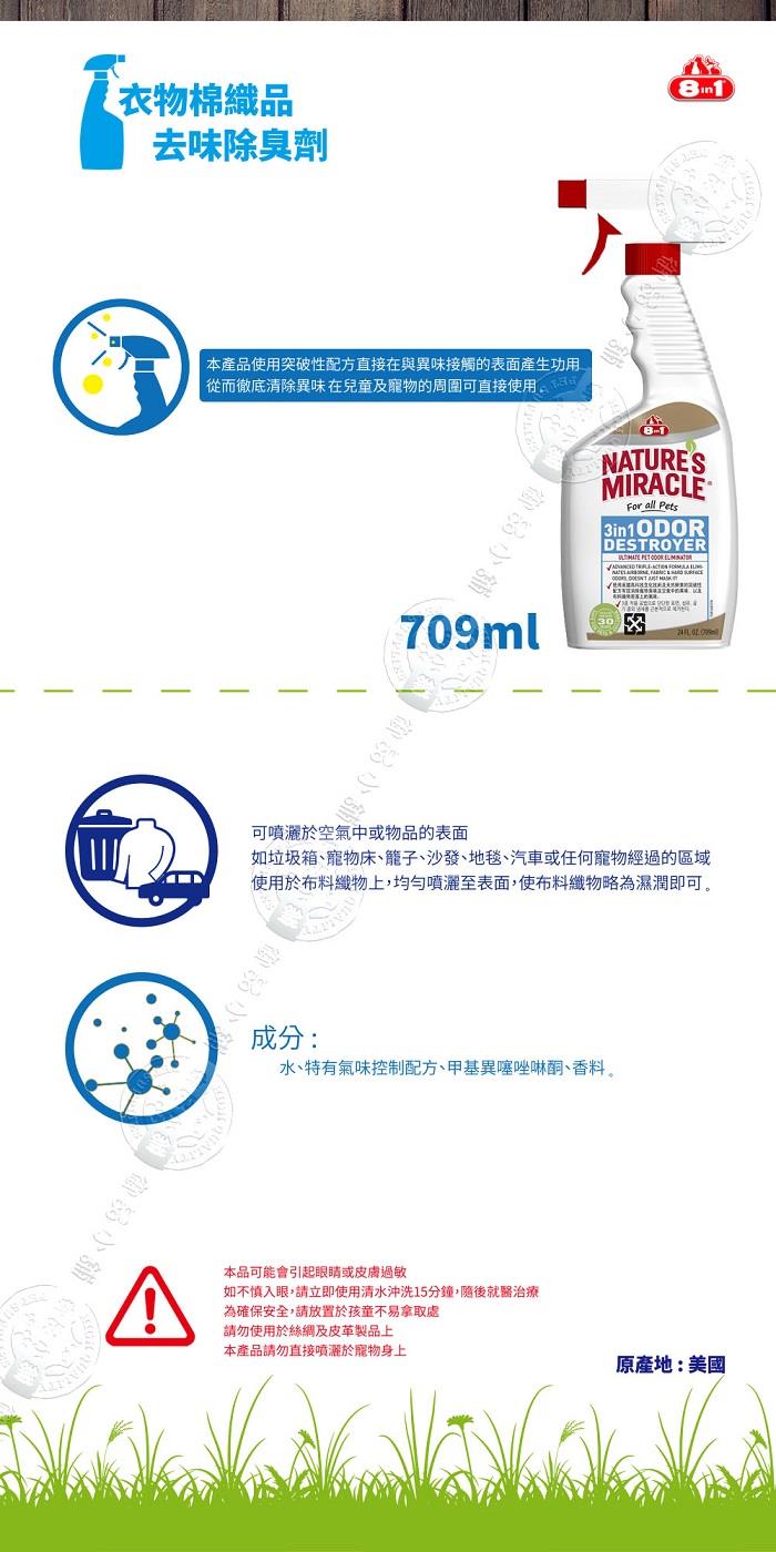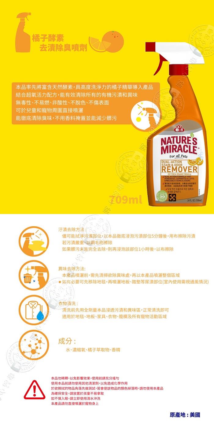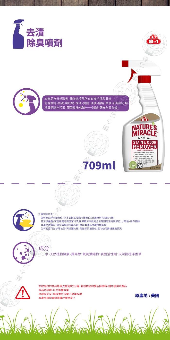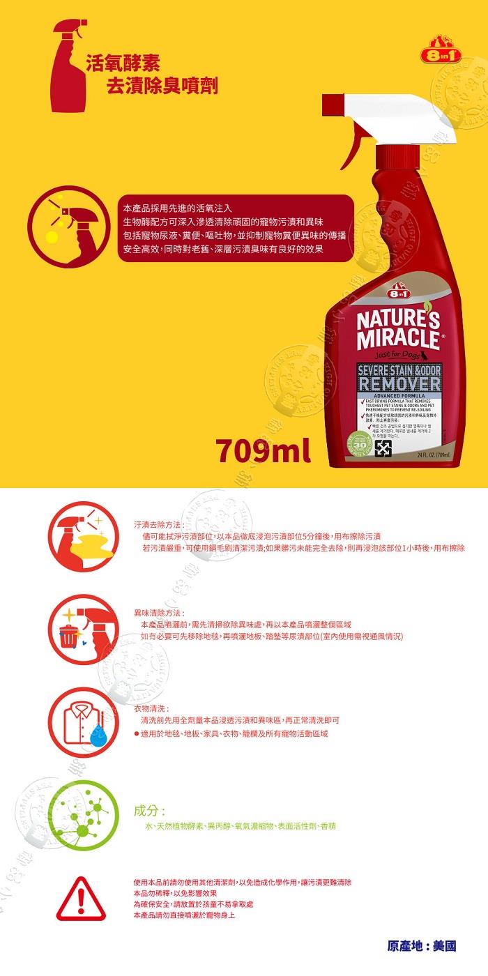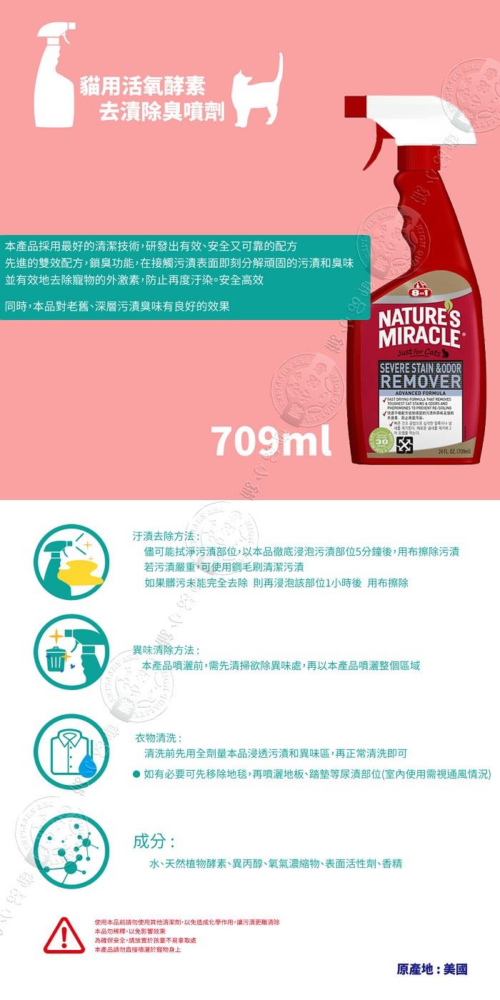 【美國8in1】自然奇蹟-貓用活氧酵素去漬除臭噴劑清新香味 /24oz*1瓶