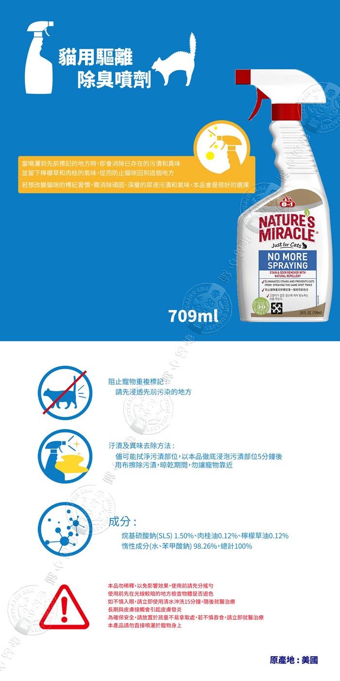 【美國8in1】自然奇蹟-貓用活氧酵素去漬除臭噴劑清新香味 /24oz*1瓶實體店面跟網路上的價格差好多!!還好逛街的時候沒有傻傻的直接買下去