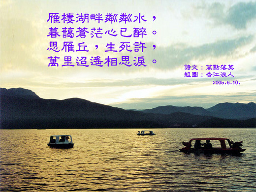 来源:(http://blog.sina.com.cn/s/blog_555e60f50100jgf2.html) - 【一剪梅】雁棲湖_萬点落英_新浪博客