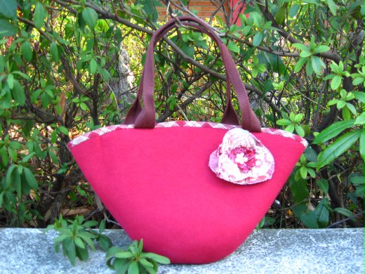 願~~ 一體成型半圓筒狀的羊毛提袋
