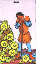 抽到錢幣七時,意味你應該會有個關於價值上的評估事件產生。