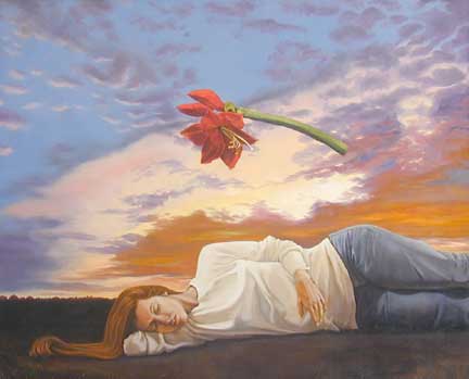 當 倦 了 , 躺 在 我 懷 中 , 擁 著 彩 雲 入 睡 !