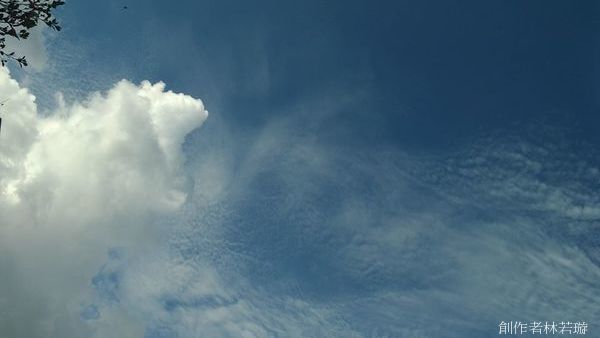 去年在老街打工時,常趁著上班時間未到,在捷運站附近與金色水岸晃蕩。有時看見天空招展著它的隨興創作,大感驚艷。這片中似有一隻鳳鳥,彷若嗅聞白雲花朵的模樣。