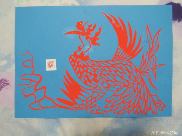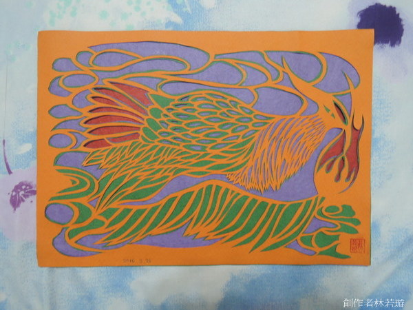 為了這兩幅作品,我的手上多了幾個傷口,不是刀子割傷的,是色紙。但其猶未悔。鳳凰總是在高高在天上翱翔的,不是嗎?我要讓鳳凰飛,而不是永遠都只能在我的夢裡盤旋。