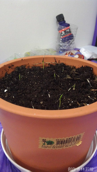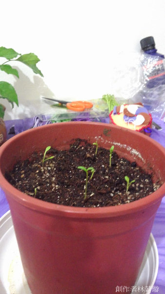 據說發芽率只有六成,但是我們的盆子裡發了七顆,媽咪說是七仙女。緩慢但不停止的成長,讓背著業績壓力的媽咪覺得欣慰。這是媽咪唯一覺得有付出就有收穫的地方。