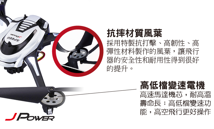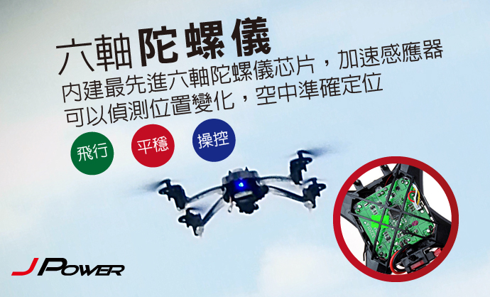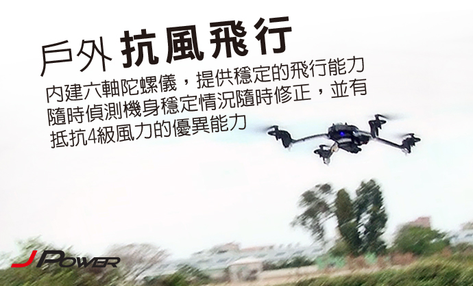 ●內建先進六轉陀螺儀,可抵抗4級風力,飛行更平穩