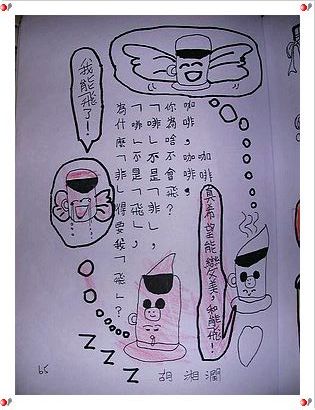 PS:大節下課或下午,常會隨手泡杯三合一咖啡,難怪這位同學會用「咖啡」為主題;而那個「啥」字則是我的日常用語-------身教真的很重要呀!