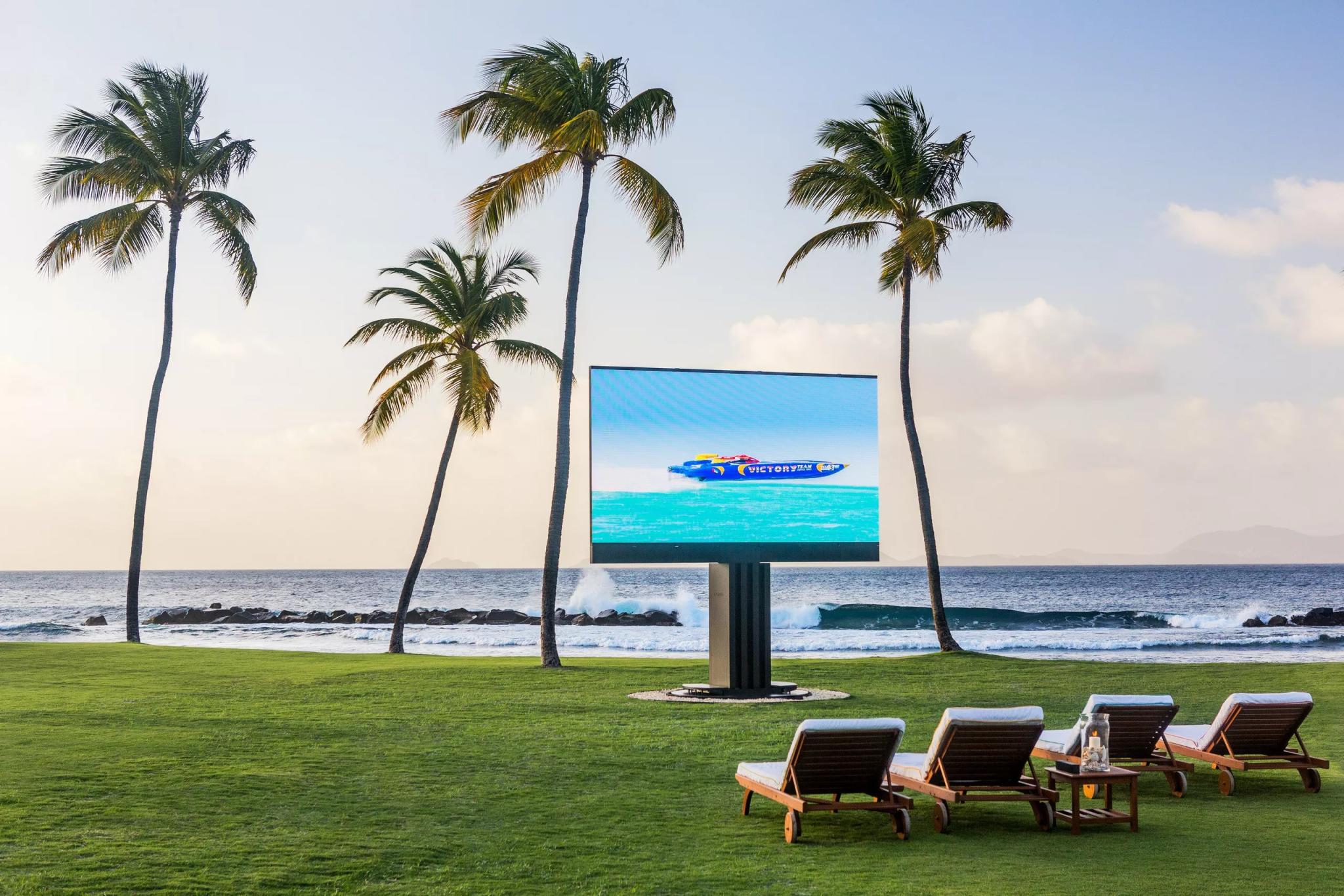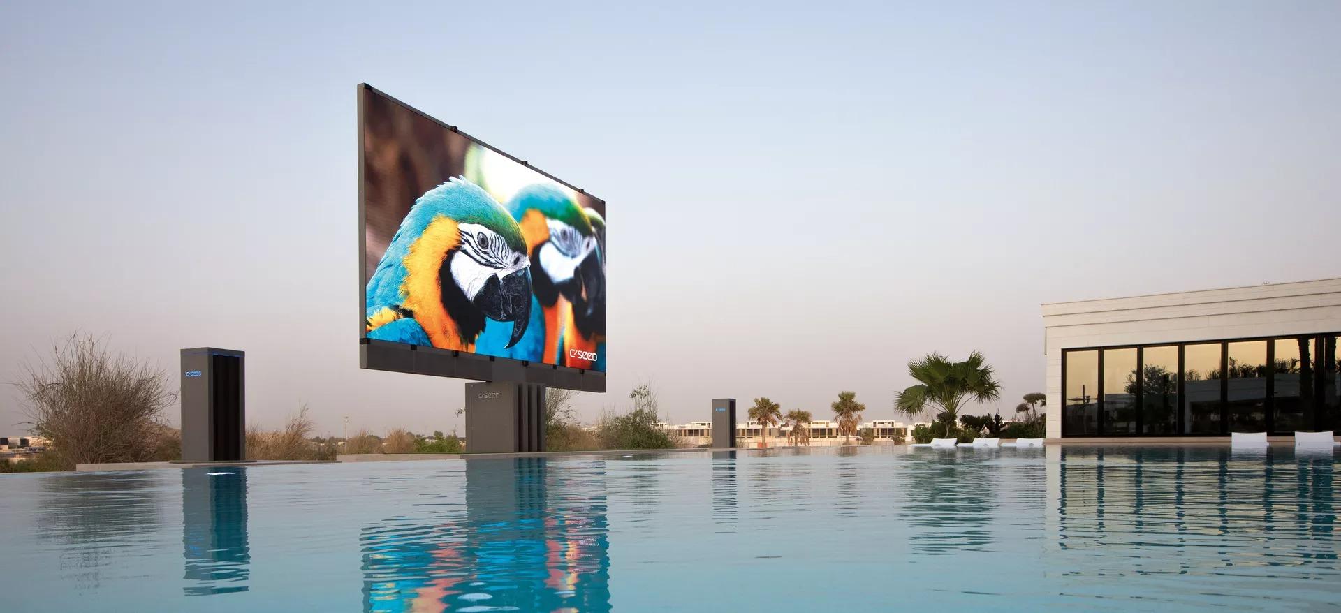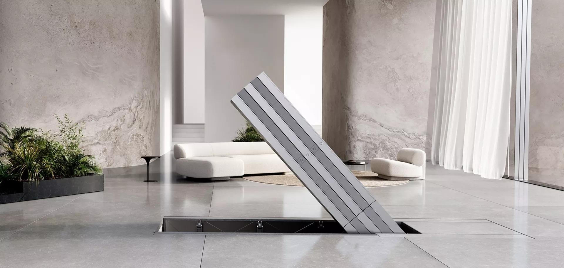 戶外型號更進一步結合可伸縮結構設計,螢幕不使用時可自動摺疊、收納於地面下方的儲藏空間,展現出精密工程與建築整合的美感。對於追求絕對隱密與設計整潔的用戶而言,這種「隱形科技」的呈現方式,正符合現代極簡奢華的精神。