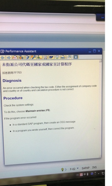 SAP錯誤訊息FF703_未指派公司代碼至國家或國家至計算程序